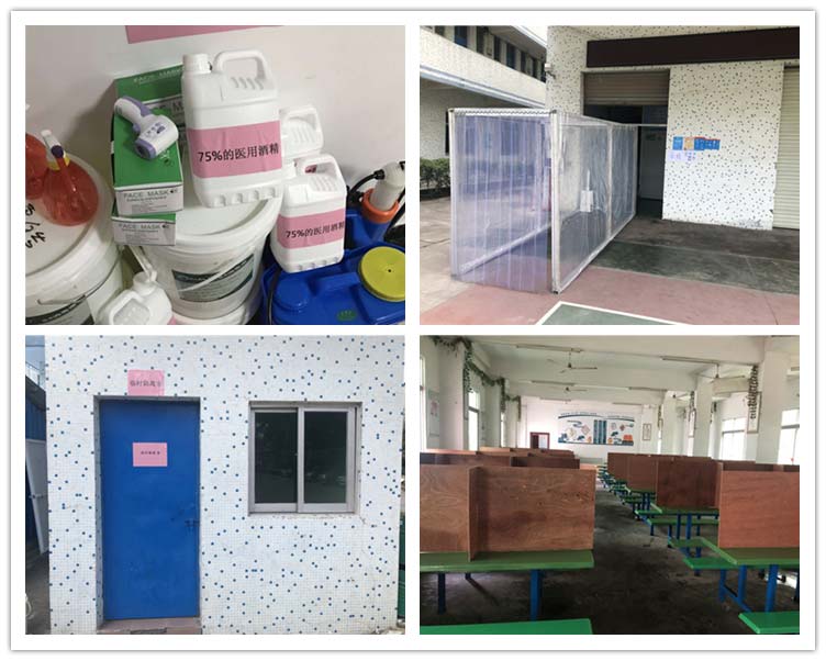 其次我們完善了廠區(qū)防疫設(shè)施設(shè)備,加強(qiáng)了廠區(qū)衛(wèi)生安全。公司配備了臨時(shí)隔離室和隔離留觀室,在進(jìn)入生產(chǎn)硅膠制品的車間入口設(shè)立了安全通道,紅外測(cè)溫被配備了口罩手套。飯?zhí)眠M(jìn)行了改造,每個(gè)位置采用了隔板確保兩人相隔一米。廠區(qū)包括員工宿舍都噴灑了84消毒液進(jìn)行消毒處理,飯?zhí)弥匦掠盟疀_洗干凈,垃圾桶則暫時(shí)遷移到廠門外。