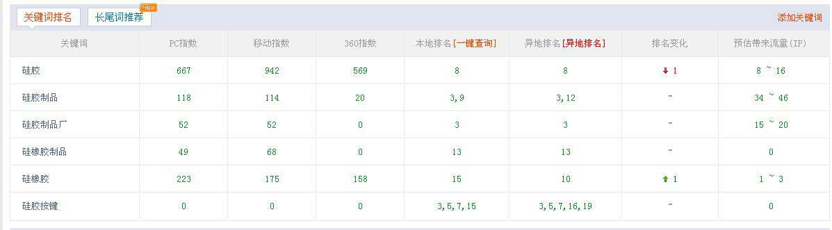 “硅膠制品、硅橡膠制品、硅膠制品廠、硅膠按鍵”是我們博皓核心產(chǎn)品關(guān)鍵詞,同時(shí)也是百度指數(shù)比較高的一些關(guān)鍵詞。說(shuō)到這里小編就額外說(shuō)一句,網(wǎng)站優(yōu)化的定位很重要,如果定位錯(cuò)了,后續(xù)再努力也是沒(méi)有辦法將權(quán)重提升至3的。