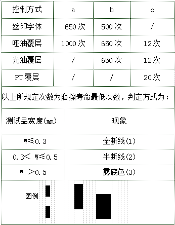 a、橡皮磨擦機橡皮磨擦,使用硬度為50°的專用橡皮,500g荷重,速率 55-60次/分鐘,移動距離25mm/次。