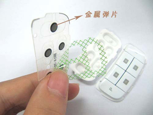 鍋仔片的好處在于具有非常好的固定性、平穩(wěn)性、回彈性和導(dǎo)通性,但在成本上則高于其它導(dǎo)電方式產(chǎn)品,如油墨導(dǎo)電和黑粒導(dǎo)電。鍋仔片硅膠按鍵之所以具備導(dǎo)電的作用,其原因在于鍋仔片的薄膜按鍵部位設(shè)計有金屬彈片,主要為不銹鋼材質(zhì),具有非常好的導(dǎo)電壽命,它的工作原理是當(dāng)按鍵面受力時,鍋仔片的金屬彈片下凹,從而接觸到PCB板,形成電流回路,即為正常工作。