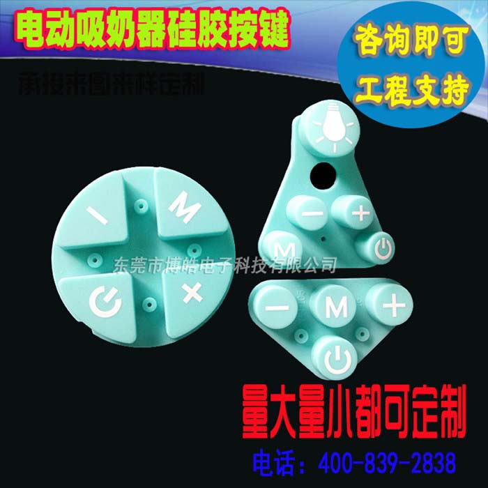 早在幾年前我們博皓電子就有在做吸奶器硅膠按鍵,近又不斷的接到這款按鍵及類似產(chǎn)品的訂單,今天要給大家介紹一下這款產(chǎn)品的具體定做過程,讓大家明白哪里才是定做吸奶器硅膠按鍵的好去處。