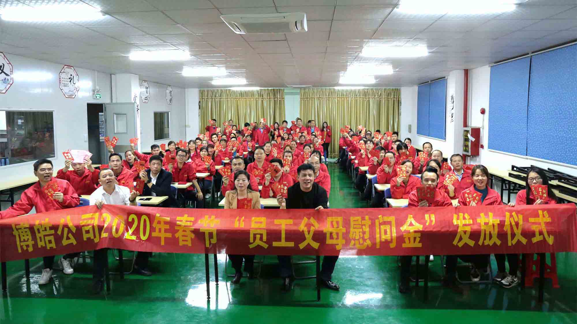 春節(jié)將至,博皓電子生產(chǎn)硅膠按鍵一線還是熱火朝天的加班中,2020年1月14日,雖然我們今年忙得年前沒有時(shí)間召開年會(huì),但我們一年一度的博皓電子員工父母慰問金及差旅費(fèi)發(fā)放儀式提前舉行。吳建議總經(jīng)理、盧柳林副總經(jīng)理、宗標(biāo)副總經(jīng)理、各分管經(jīng)理主管及全體員工共150余人參加本次活動(dòng)。