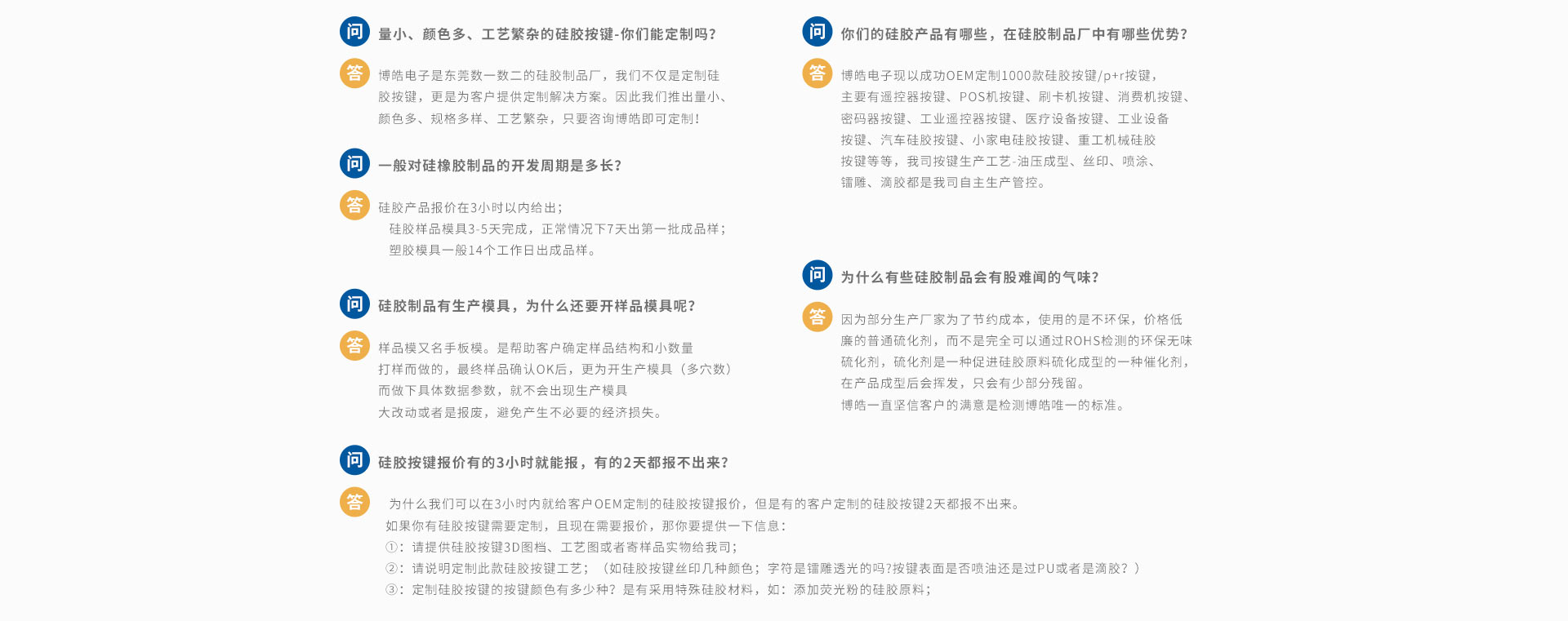 2014年國外重型機械機車控制器面板開始流行使用硅膠材質,國內的徐州重工、三一重工、柳州重工等都開始紛紛嘗試,博皓電子也正是以為專注硅膠按鍵開模定制,車間80-90%均是生產(chǎn)硅膠按鍵,工藝齊全獲得很多客戶的信任,最終達成長期合作。