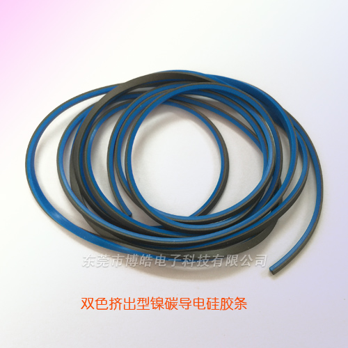 | 產(chǎn)品名稱 | 碳鎳硅膠+藍色硅膠雙色擠出成型導(dǎo)電硅膠條 |